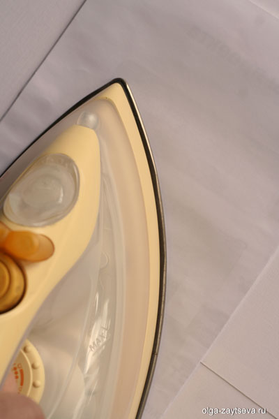 Излишки по длинной стороне отгибаем на изнаночную сторону. Оставшиеся выступающие края пленки обрезаем.