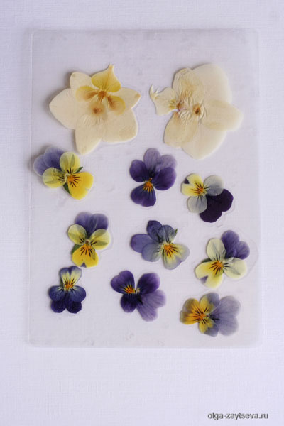 У нас есть подготовленный фон и сухие цветы виолы.
